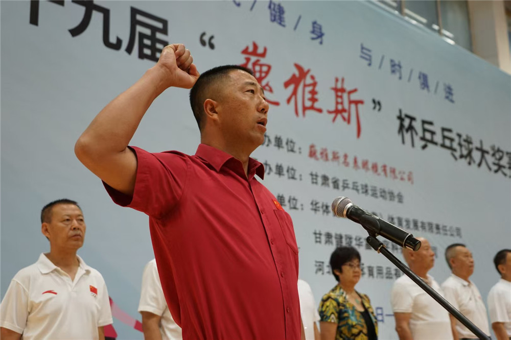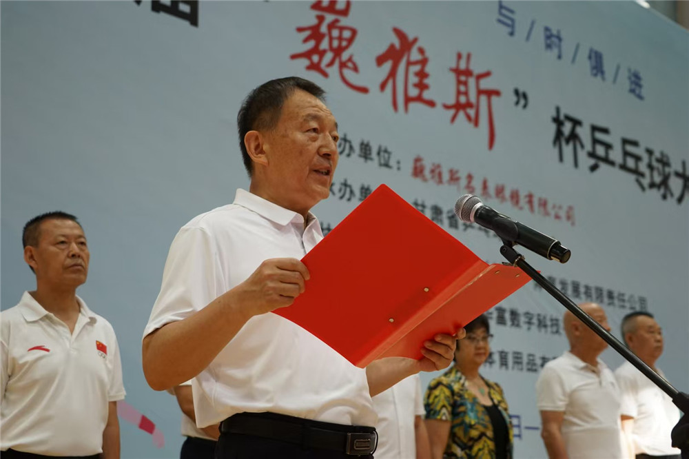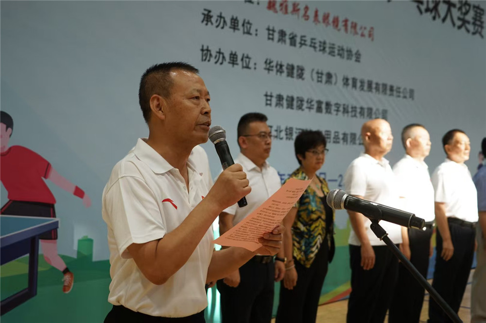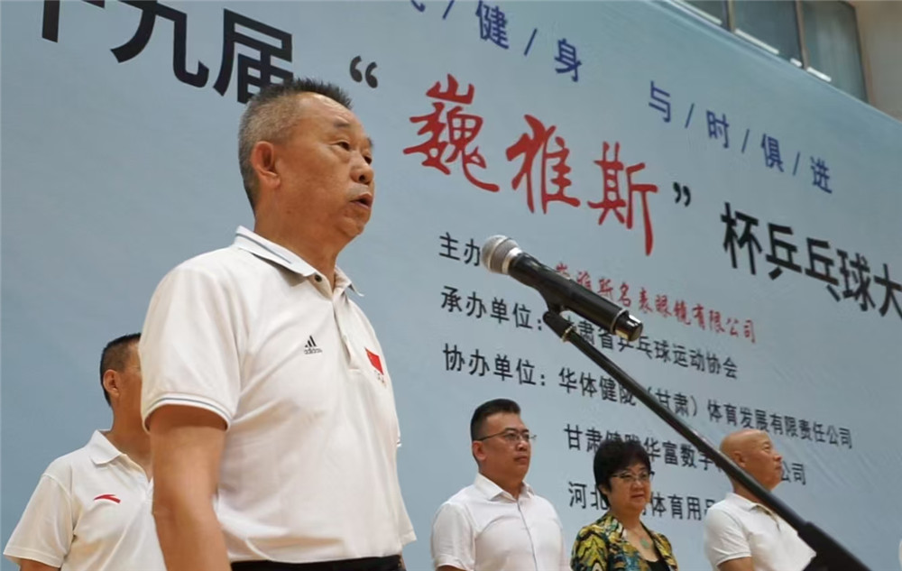 甘肅省乒乓球運動(dòng)協(xié)會(huì )顧問(wèn)任燕順,中國鐘表商會(huì )副會(huì )長(cháng)、甘肅省眼鏡協(xié)會(huì )原會(huì )長(cháng)、甘肅省乒乓球協(xié)會(huì )名譽(yù)副會(huì )長(cháng)、巍雅斯名表眼鏡有限公司董事長(cháng)裴正江,甘肅省乒乓球運動(dòng)協(xié)會(huì )會(huì )長(cháng)韓力,甘肅省乒乓球運動(dòng)協(xié)會(huì )黨支部書(shū)記苗發(fā),全聯(lián)房地產(chǎn)商會(huì )黨委副書(shū)記、甘肅省城建商會(huì )黨委書(shū)記、甘肅省乒乓球運動(dòng)協(xié)會(huì )名譽(yù)副會(huì )長(cháng)、華富信息集團董事長(cháng)陳啟建,甘肅省愛(ài)國擁軍促進(jìn)會(huì )常務(wù)副會(huì )長(cháng)、甘肅省乒乓球運動(dòng)協(xié)會(huì )副會(huì )長(cháng)、蘭州市籃球運動(dòng)協(xié)會(huì )主席、蘭州藍酒實(shí)業(yè)集團董事長(cháng)宗榮,青海省乒乓球運動(dòng)協(xié)會(huì )副主席高麗嚴,寧夏自治區乒乓球運動(dòng)協(xié)會(huì )副會(huì )長(cháng)張智勇,巍雅斯名表眼鏡有限公司總裁裴明偉,副總裁裴明宏,副總裁、甘肅樺琳房地產(chǎn)開(kāi)發(fā)有限公司常務(wù)副總經(jīng)理楊丁輝及有關(guān)領(lǐng)導、運動(dòng)員、裁判員、教練員、工作人員一起參加了簡(jiǎn)樸但氣氛熱烈的大獎賽開(kāi)幕式。